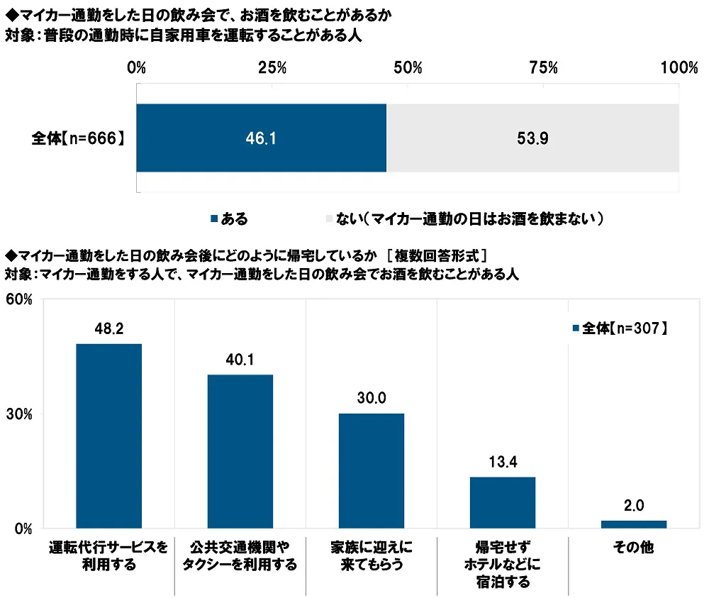 ■「マイカー通勤をした日の飲み会でお酒を飲むことがある」マイカー通勤者の4割半