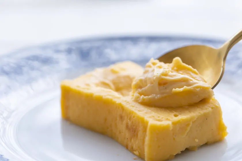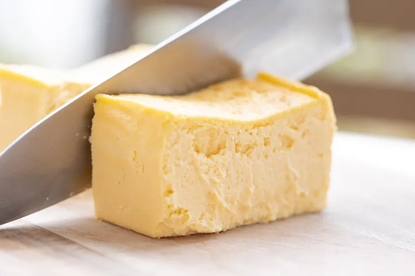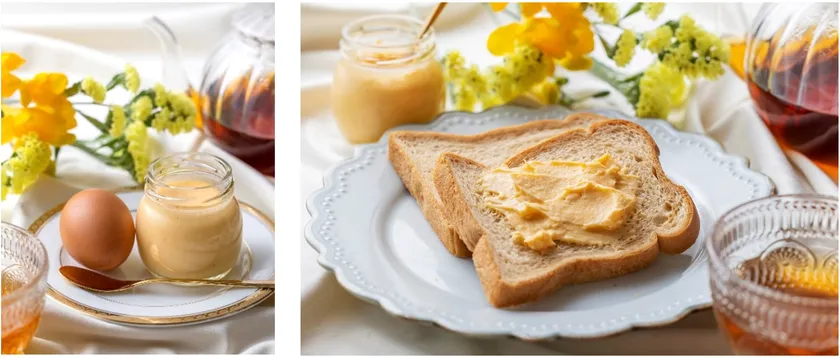 日の出たまごの黄身と3種のチーズの美味しさをギュッとつめこみました。低温でじっくりと焼きあげており、とろけるような口どけと薫りが特徴です。スプーンですくっておやつに、焼いたパンに塗って朝食に、いろいろな食べ方でお楽しみいただけます。