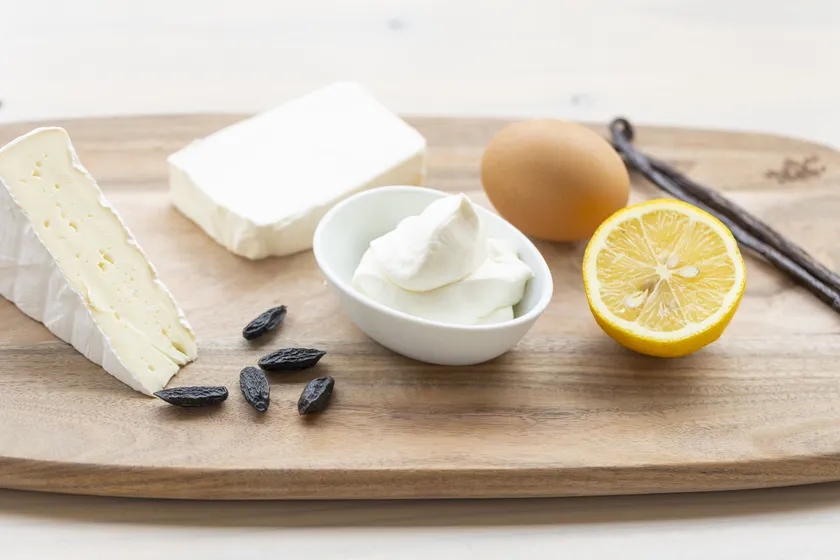 クリームチーズ、マスカルポーネチーズ、ブリーの3種類のチーズを使用しています。濃厚さがありつつもチーズのクセをおさえ、たまごの美味しさを邪魔しないよう選び抜きました。