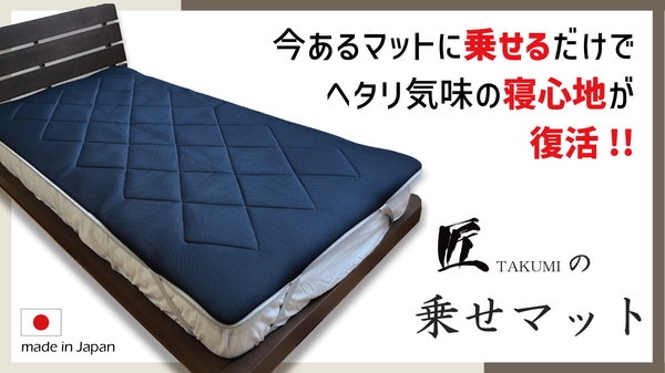 1.5㎝の奇跡。ヘタリ気味の寝具に乗せるだけで、リッチな寝心地復活!職人による日本製「匠の乗せマット」Makuakeにて先行販売開始。