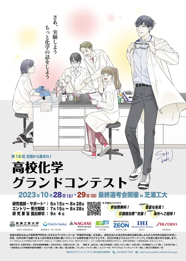 芝浦工業大学(東京都江東区/学長 山田 純)は、2023年度から「高校化学グランドコンテスト」(通称:化学グラコン)の主催校となります。本コンテストはこれまで大阪公立大学(開催時は大阪市立大学)を中心に、2004年より通算17回開催されてきました。「化学の甲子園」とも呼ばれる全国的なイベントであり、高校生の自主的な研究活動の支援及び発表の場を提供する人材育成プログラムとして年々規模を拡大してきました。2019年には120を超える応募があり、最終選考会には延べ900人近くが参加。海外からも優秀な高校生を招聘して国際大会とする一方、国内優秀発表チームを海外サイエンスフェアへ派遣推薦し、さらなる国際感覚の涵養を促しています。