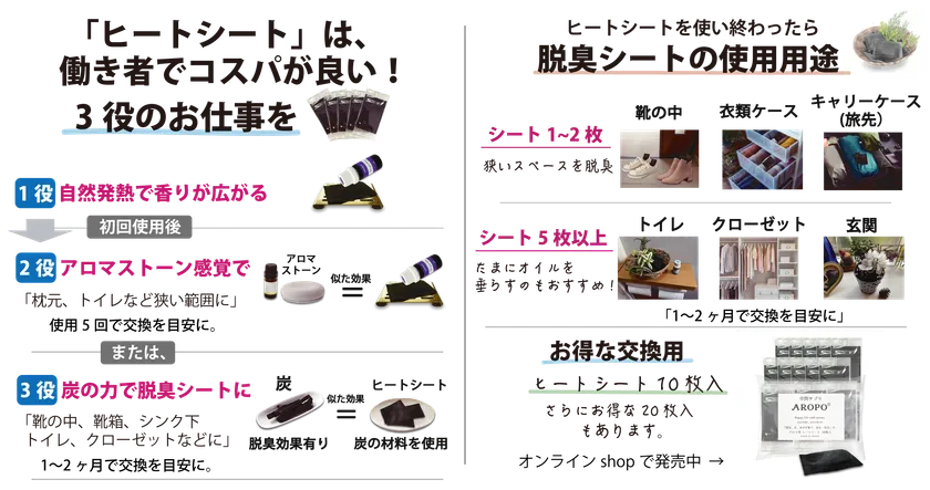 ■働き者でコスパが良「ヒートシート1枚で3役のお仕事を!」