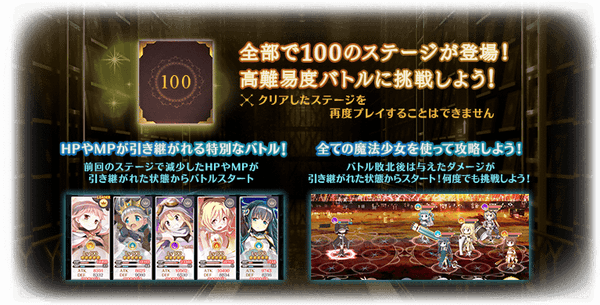 本イベントでは次々とステージが登場し、ステージクリア時の魔法少女のHPとMPが次回のステージへ引き継がれる特別なバトルに挑戦できます。
