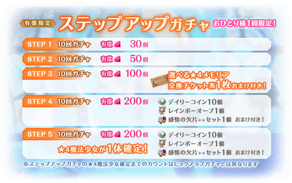 ※STEP5での★4魔法少女について、ピックアップ対象の魔法少女が確定するわけではございません。