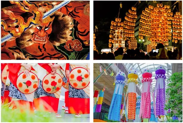 東北地方では東北四大祭り、東北三大祭りなどと呼ばれる夏祭りが、8月上旬にまとまって開催されています。