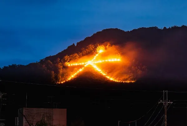 京都各地にある5つの山それぞれが午後8時から順に「大文字」「左大文字」「妙法」「船形」「鳥居形」の形に点火する「五山送り火」。京都の夏に欠かせない風物詩です。コロナ禍の影響で一時は点火数縮小となっていましたが、2022年には3年ぶりに通常規模での点火が実施されました。