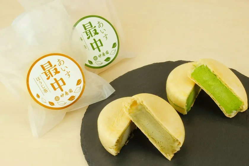 サクッ、とろっ、もち!?「ほうじ茶黒豆キャラメルサンド」と 抹茶・ほうじ茶の「あいす最中」を 老舗茶屋『妙香園』が6月1日より新発売