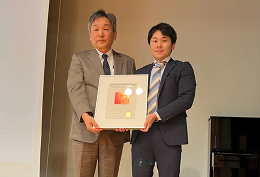 表彰式の様子(右が立花 卓巳さん、左は日本風工学会・奥田 泰雄会長)