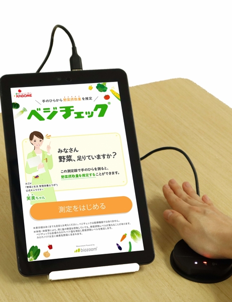 測定器を用いて1日にどのくらいの野菜が摂取できているのかを計測するベジチェックを体験していただきます。