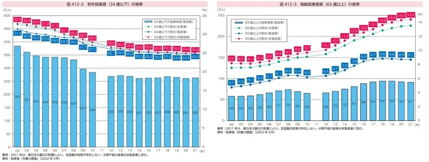 引用元:経済産業省「2022年版ものづくり白書」(第4章 人材確保・育成 第1節 ものづくり人材の雇用と就業動向等について)