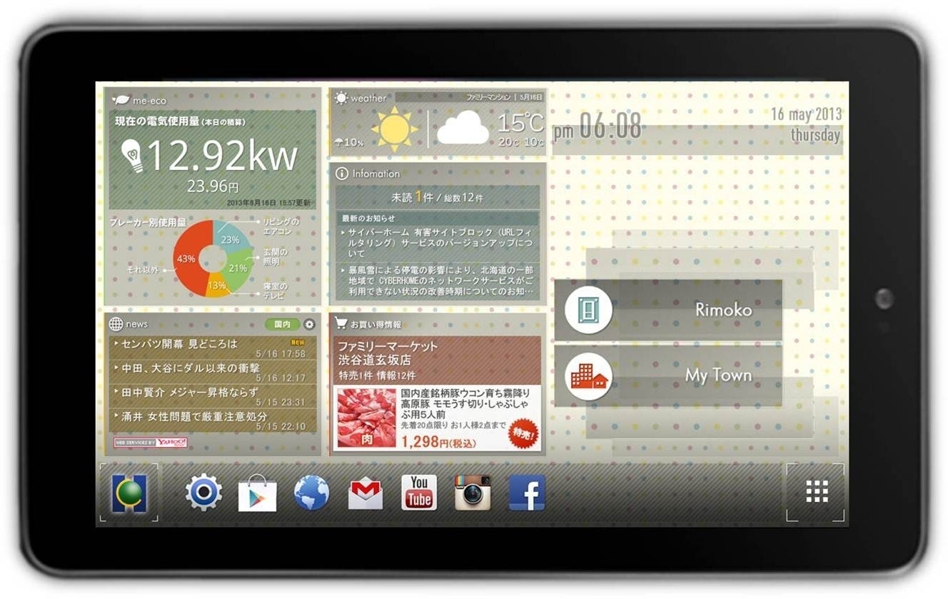本実験では、FNJが提供するスマートマンションサービスを導入したマンションの入居者からモニターを募集し、Android(TM)タブレット「Nexus 7(ネクサスセブン)」を200世帯に無償提供します。本タブレットに搭載したホームアプリを使うことで、日々の電力利用状況を確認できるとともに、需給逼迫が予想される時には商業施設の割引クーポンやお買い得情報などを受信します。それにより、入居者に外出を促し、マンションの電力需要のピークシフトを目指します。DNPは、タブレット端末の調達や割引クーポンなどの特典情報を提供する協賛企業の募集などを行ないます。