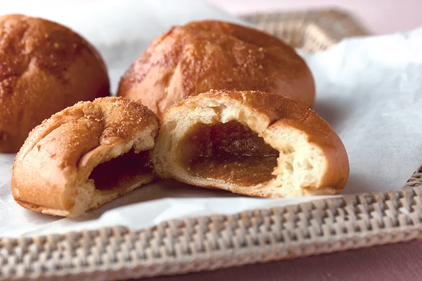 有機栽培大豆きなこと北海道生乳バターで作ったきなこバターとゴマを、米粉入りの生地で包んだパン。