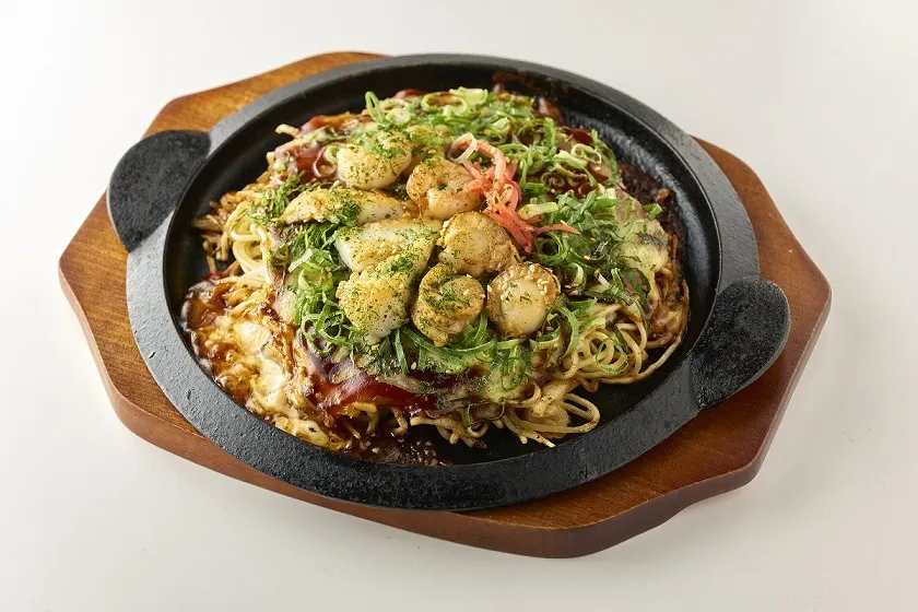 お好み焼きと相性がいい2種類のチーズと海鮮がたっぷり入ったお好み焼きです。