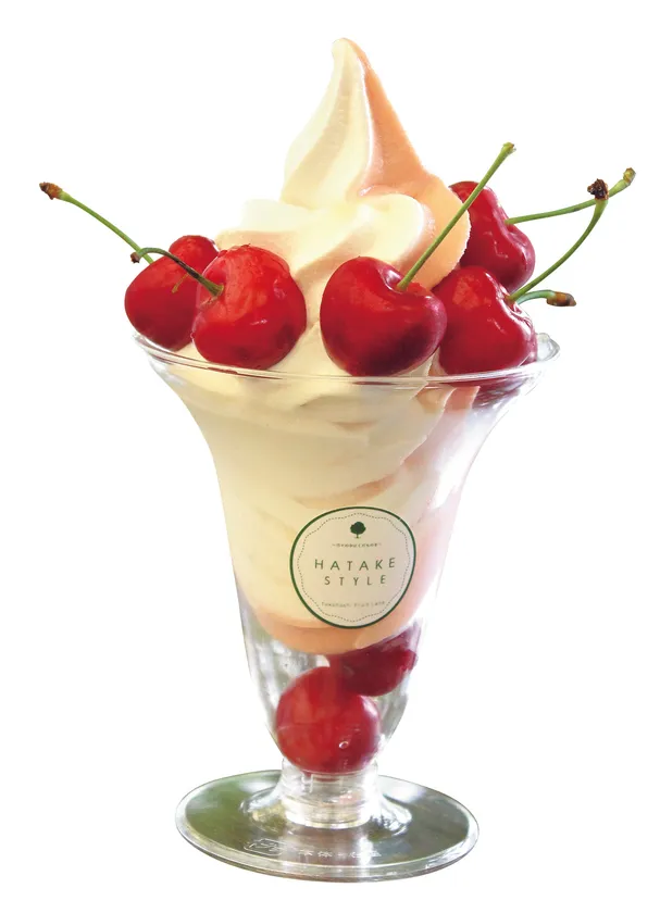 旬のさくらんぼ「紅秀峰」の甘みと山形県産牛乳を使用したミックスソフトの相性抜群。