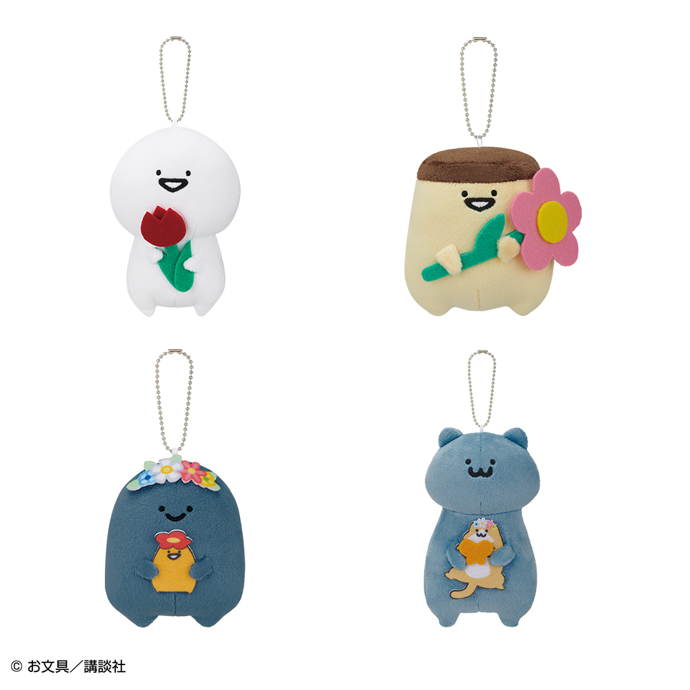 このほか、さがら刺繍がワンポイントで入ったデザインを含んだ全6種のタオルや、アニメの癒されるシーンが描かれたデザイン、新規描きおろしデザインを使用したラバーチャームと、いずれもお文具さんたちに心癒される商品を取り揃えました。