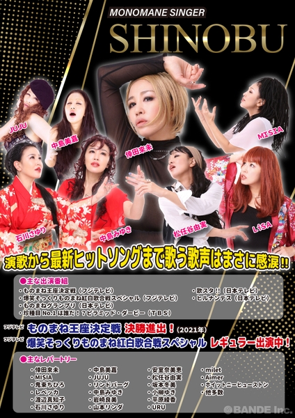 フジテレビ系列の「爆笑そっくりものまね紅白歌合戦スペシャル」レギュラー出演中!、「ものまね王座決定戦」2021年・2022年決勝進出!