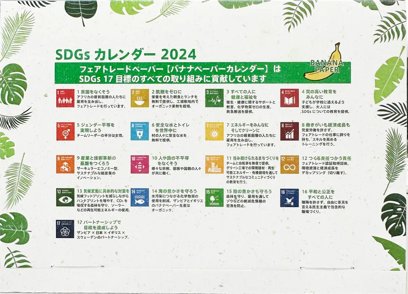 【SDGsバナナペーパーカレンダー2024詳細】