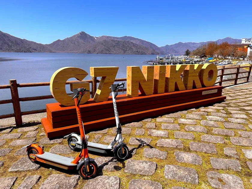 日光G7モニュメントと電動キックボード