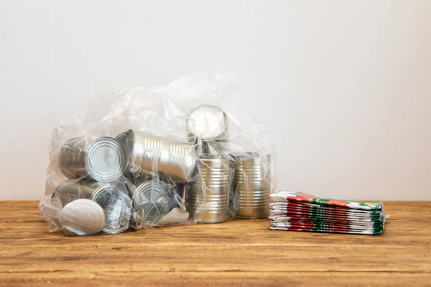 実際に食材を使ったあとの缶と紙パックの使用後の容器のかさばりを比較してみると、その差は歴然。紙パックを上手に活用して、気持ちよくリサイクルに取り組みたいですね。
