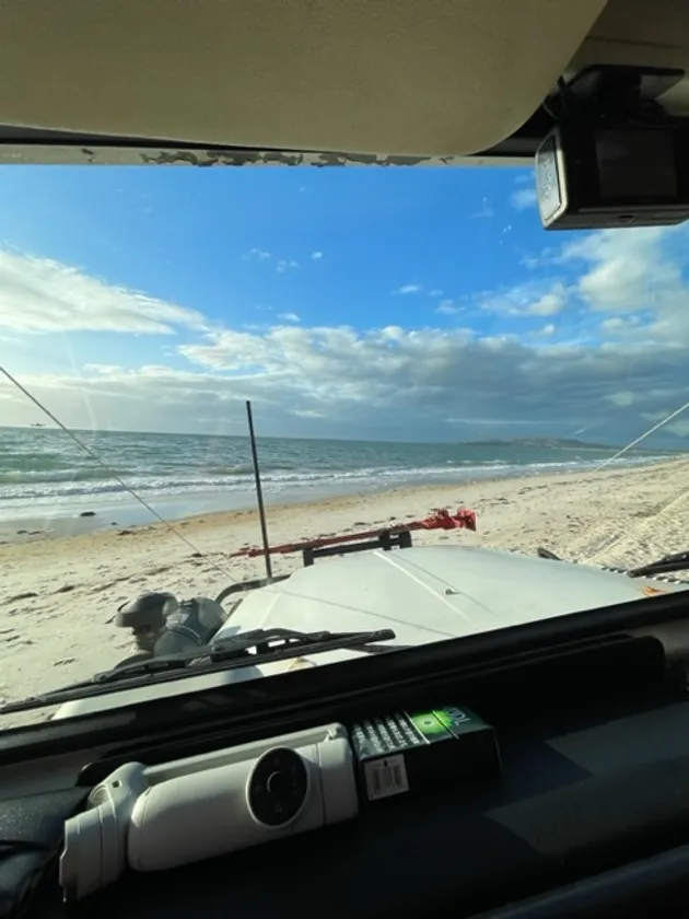 フロント越しに見える永遠に続く砂浜