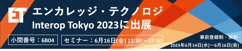 システム運用のリスク管理ソリューションを提供するエンカレッジ・テクノロジ株式会社(本社:東京都中央区、代表取締役社長:石井 進也、以下、「当社」)は、6月14日(水)~16日(金)に千葉県 幕張メッセで開催される「Interop Tokyo 2023」に出展いたします。ブースでは特権操作ログ管理ツール「ESS REC 6」、次世代型特権ID管理ツール「ESS AdminONE」を展示するほか、展示会場内セミナーにも登壇いたします。