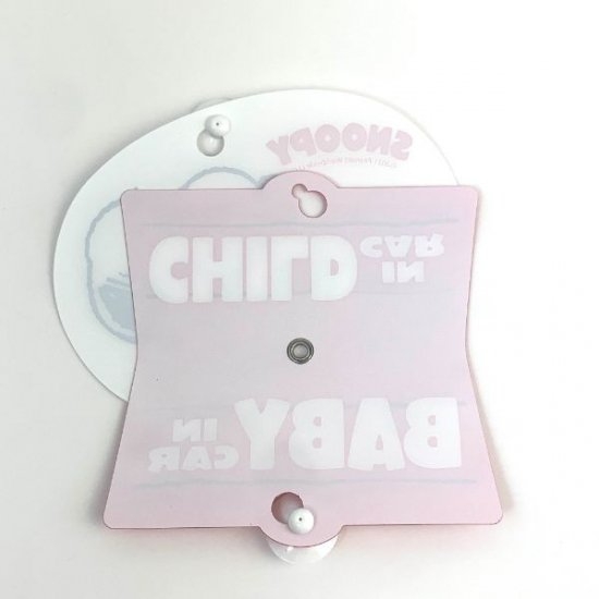 こちらはくるくる回すタイプのセーフティサイン!BABY IN CARとCHILD IN CAR の文字が取り付けられており、下部プレートの吸盤を外し回転させれば簡単に切り替わります。お子様の成長に合わせて使えるから、買いなおす必要が無く経済的ですね♪