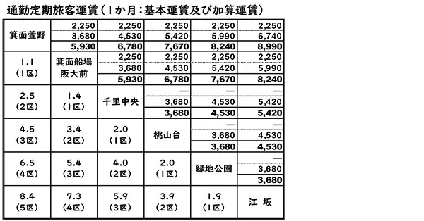 適用区間:箕面萱野駅⇔緑地公園駅間、箕面船場阪大前駅⇔江坂駅間