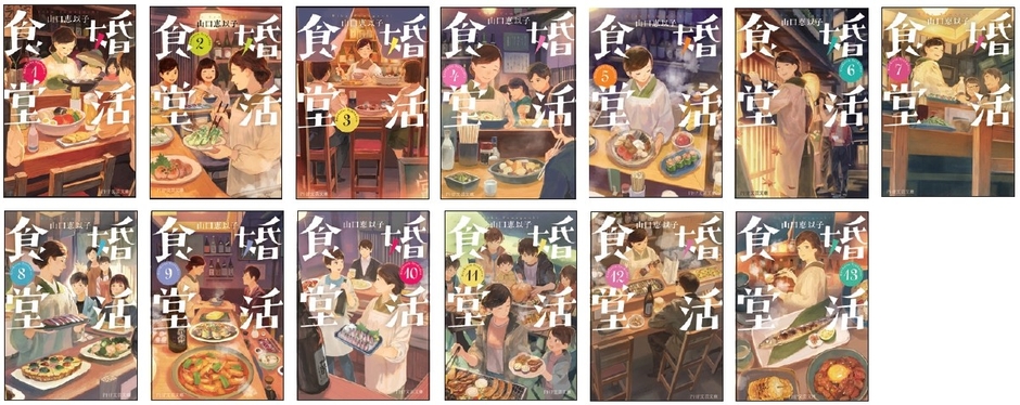 著者の山口恵以子さんは、社員食堂で働きながら執筆活動を続け、2013年に松本清張賞を受賞した際には、「食堂のおばちゃん」が賞を獲ったことが話題となりました。『婚活食堂』シリーズ(PHP文芸文庫)は、『食堂のおばちゃん』シリーズ(ハルキ文庫)、『ゆうれい居酒屋』シリーズ(文春文庫)と共に、「食と酒」シリーズと総称される著者の代表作で、3つのシリーズの累計発行部数は130万部を超えています。中でも『婚活食堂』は、山口さんの「お見合い43回全敗」という経験と食堂勤務という経歴から生まれました。元・人気占い師の女将が営む「めぐみ食堂」に集まる、恋の悩みと空腹を抱えた常連客の人間模様を描く本作は、2023年には菊池桃子さんの主演でドラマ化もされ、現在、テレビ大阪で再放送中です。春キャベツとスモークサーモンの重ね漬け、塩豚の夏野菜巻き、春菊とキノコのサラダなど、物語に登場する季節に合わせた料理についてファンからは、「読むだけで食欲をそそる」という声も数多く寄せられています。
