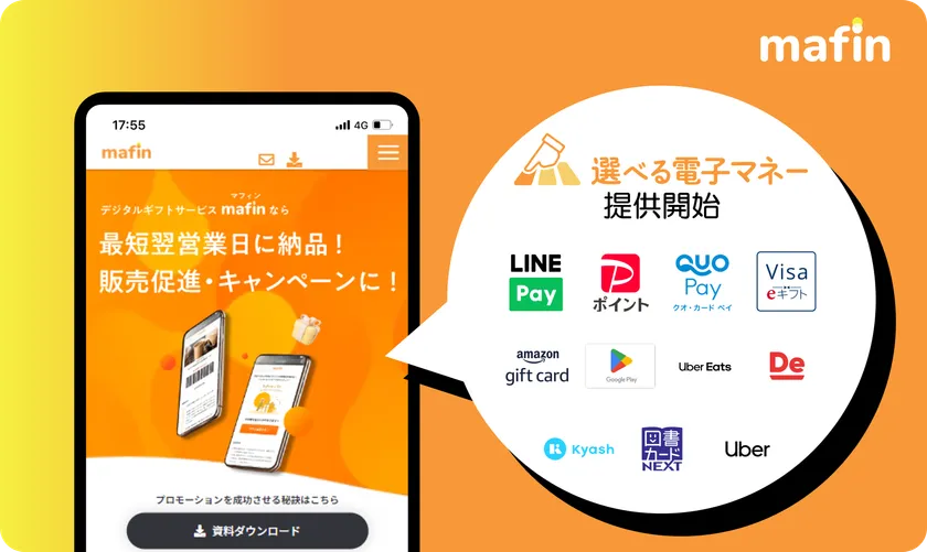 デジタルギフトサービス「mafin」、各電子決済サービスの ポイントを自由に選んで受け取れる「選べる電子マネー」を 2023年6月5日より提供開始