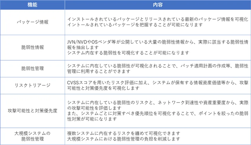 SPMv2.0は日々の脆弱性情報を収集し、脆弱性を分析・評価する独自技術のエンジンにより構成され、システムの脆弱性の診断、脆弱性管理機能を提供します。