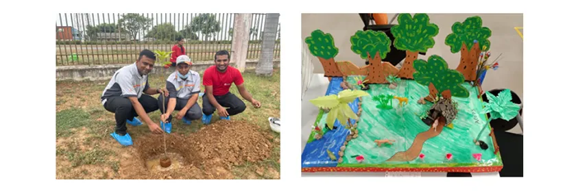 ・活動概要:ニムラナ工場、スリシティ工場の社員が清掃活動のうえ植樹を行いました。また、清掃活動で回収した廃棄物を再利用して自然豊かな環境の模型を製作し、資源の有効活用に貢献しました。