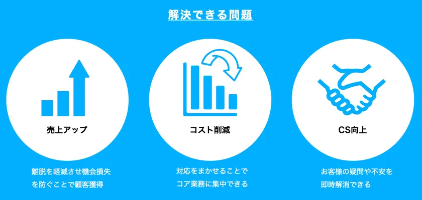 しかし本サービスでは、チャットツールを併用することで、電話での対応を行う前に「チャットボット(自動応答)による無人対応」「有人でのチャット対応」という2つの段階を作り出し、少ないオペレーターでの対応が可能となりました。これにより、コストを抑えたお客様サポートが実現できます。