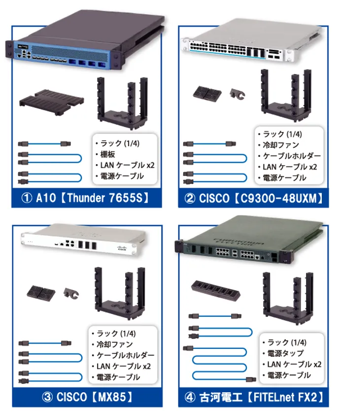付属品:ラック(1/4)、電源タップ、LANケーブル×2、電源ケーブル