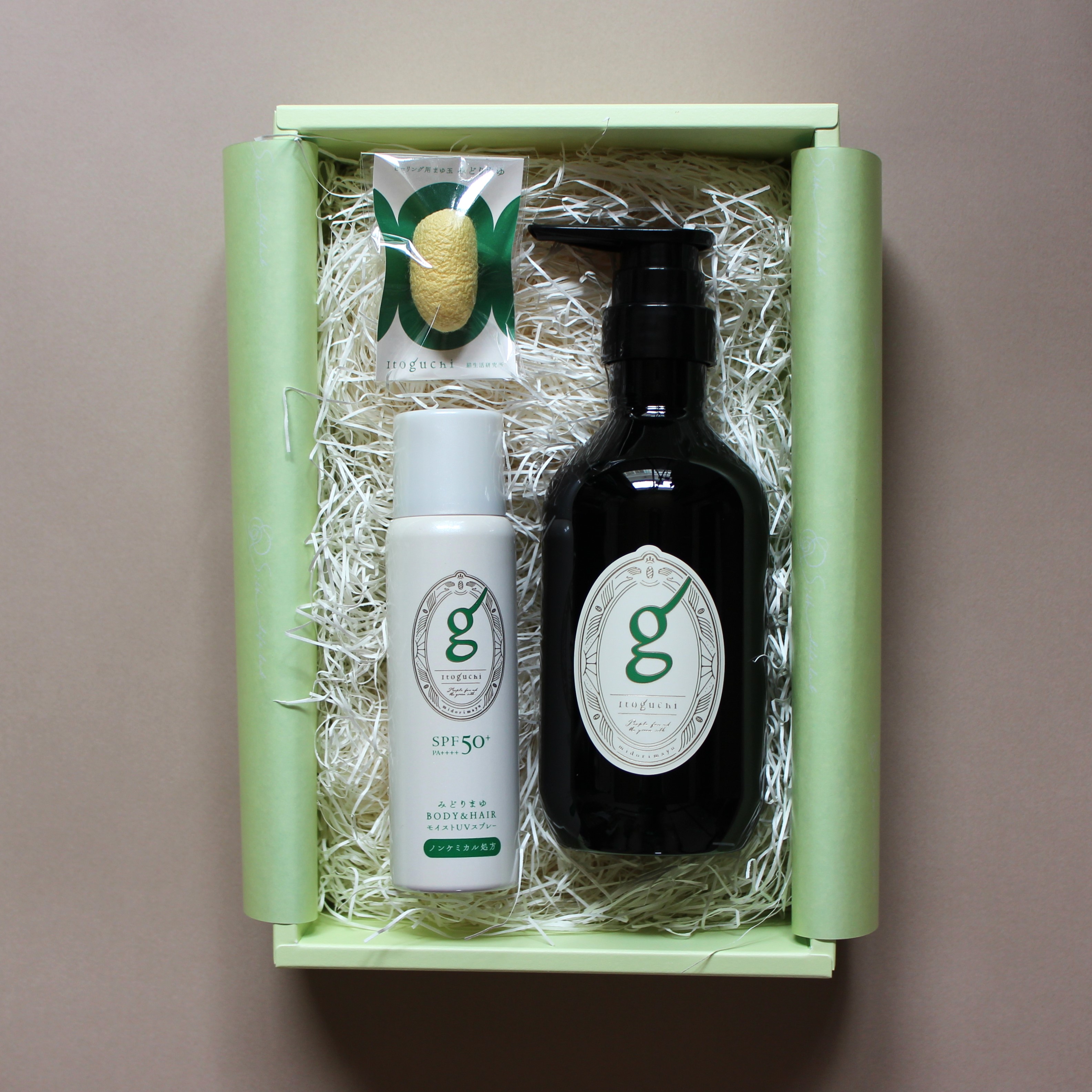 今回、父の日限定ギフトとして、Itoguchi『みどりまゆ BODY&HAIR モイストシャンプー』ボトルと、6月1日に新発売の『みどりまゆ BODY&HAIR モイストUVスプレー SPF50+/PA++++』、さらに、まゆ玉をセットにし、期間限定のキャンペーン価格でオンラインストアで販売いたします。( https://shop.silklifelab.com/ )