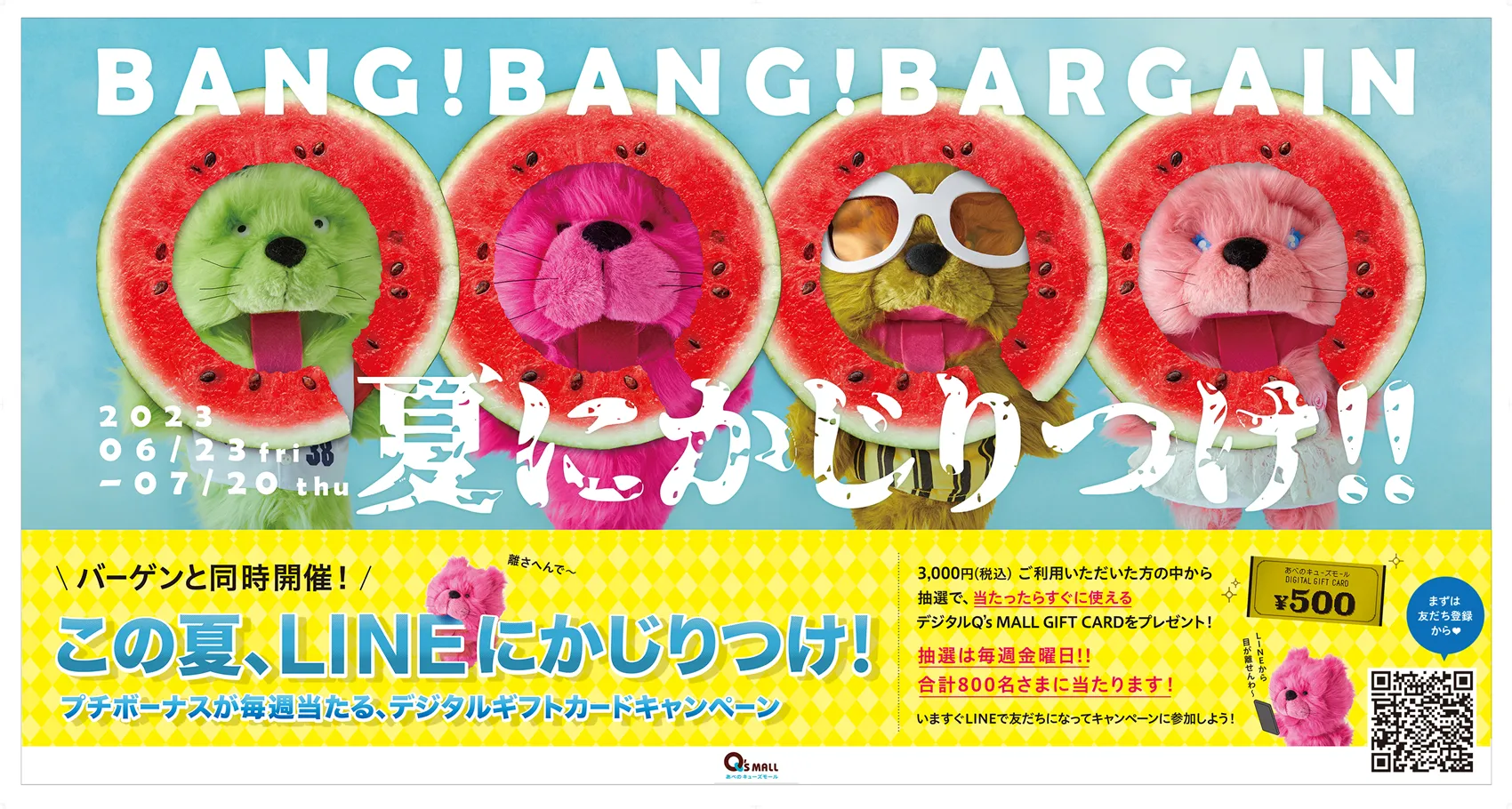 キューズモールの夏バーゲン「BANG!BANG!BARGAIN」を開催