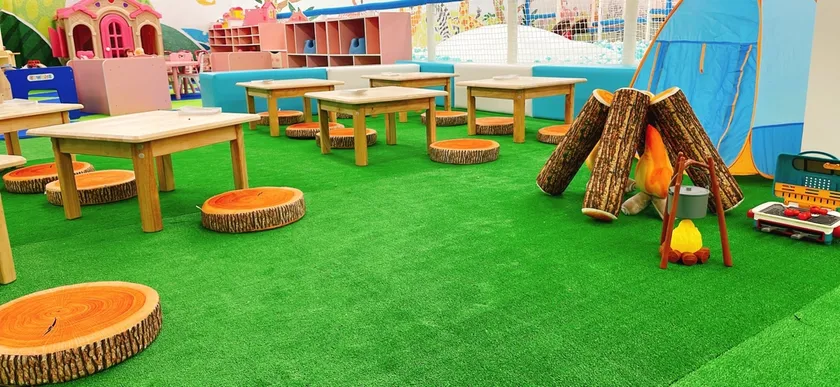 キャンプコーナーでは、室内でもアウトドア気分を味わいながらおくつろぎいただけます。キッズランドUSでは飲食持ち込み自由ですので、キャンプ気分でお食事を楽しんでいただけます。また、テントを使ったごっこあそびにもオススメのエリアです。