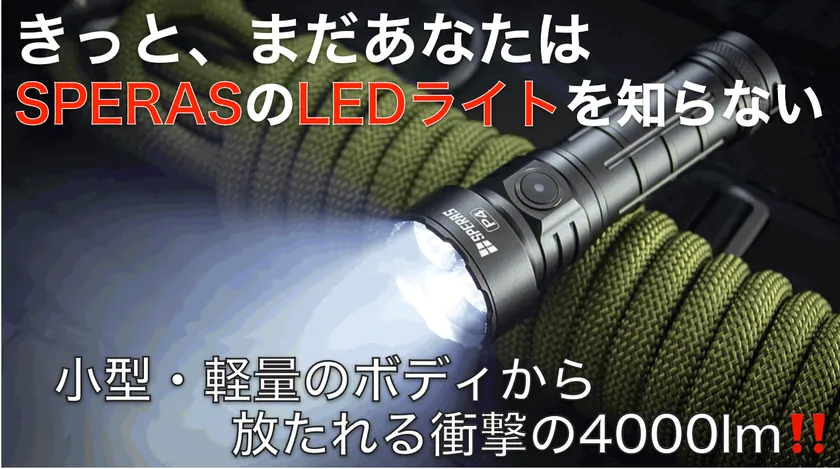 小型・軽量のボディから放たれる衝撃の4000ルーメンのLEDライトSPERAS(スぺラス)社製「P4」の先行予約販売を応援購入サイト「Makuake(マクアケ)」にて6月2日(金)に開始しました。