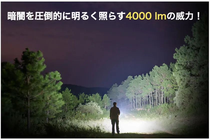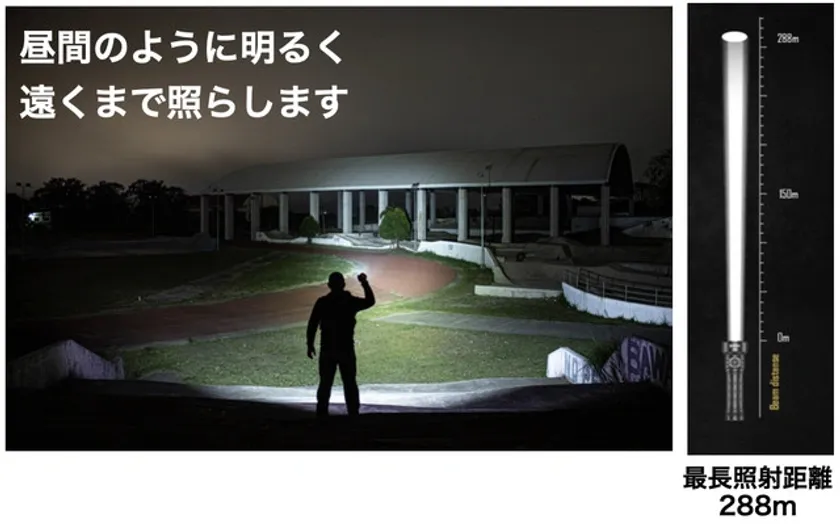 しかし「P4」は、その20倍の光束により288m先で新聞が読めるほど暗闇を明るく照らします。