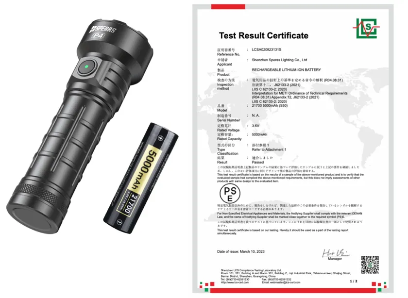 P4に使用している21700電池は、安全のためのPSE規格を取得済みのものです。