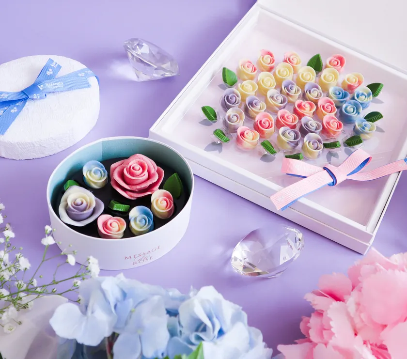 お花屋さんのチョコレートブランド『MESSAGE de ROSE BY KARENDO』は、「お花でドキドキ・ワクワク」をコンセプトとし、お花屋さんの店頭が季節のお花によって雰囲気が変わり、季節を感じられるように、チョコレートでも季節を感じていただきたいと考え、季節ごとの限定チョコレートの開発を行いました。第1弾といたしまして、梅雨の時期に涼やかに季節を感じていただける「あじさい」カラーをイメージしたチョコレートを発売いたします。