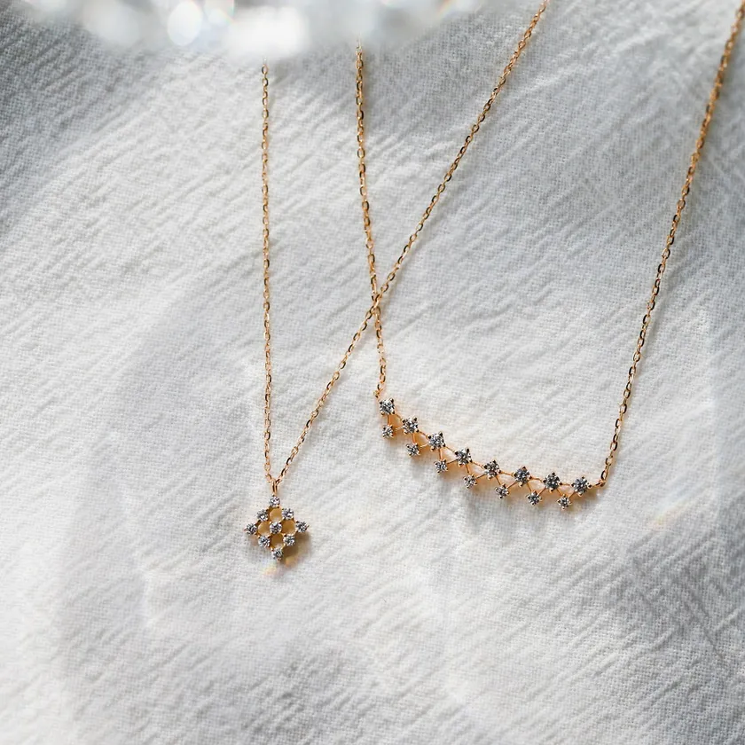 一粒ダイヤモンドネックレスが代表的人気商品で、様々なお客様のニーズに合わせ、70種類ほどの幅広いラインナップを取り揃えている。極小のダイヤモンドを顕微鏡を使い留める技術「マイクロスコープ・セッティング」を用いたパヴェを始めとする繊細なデザインも豊富。