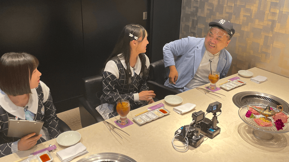ここあ(甲斐心愛)&あかりん(福田朱里)の1期生コンビが見守る中、完全会員制の焼肉店で絶品料理食リポに挑戦します。