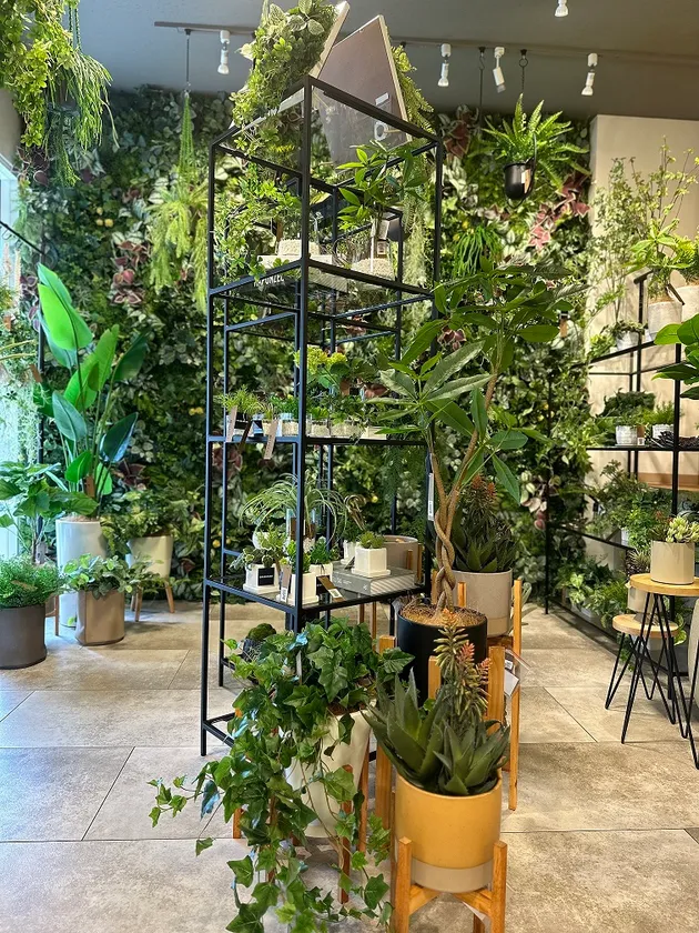常に400点以上のインドアグリーンとアートグリーンを展示。グリーンは暮らしを彩るだけでなく、心にも癒しを与えてくれる効果があります。