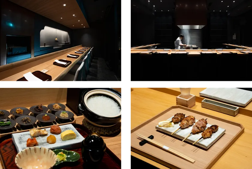 各地より厳選したお米と水を土鍋で炊く名物土鍋ごはんと旬の素材を現代的手法で味わうモダン懐石とミシュラン1つ星店で修行した店主・白石優太による焼鳥。黒漆喰が広がるレトロモダンの空間で東京本店は予約困難店といわれています。