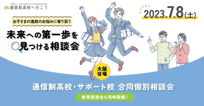 株式会社大阪朝日広告社(所在地:大阪府大阪市中央区)は、『通信制高校・サポート校 合同個別相談会』(後援:サンケイリビング新聞社)と題した進学相談会を2023年7月8日(土)に大阪の梅田センタービル16階で開催します。