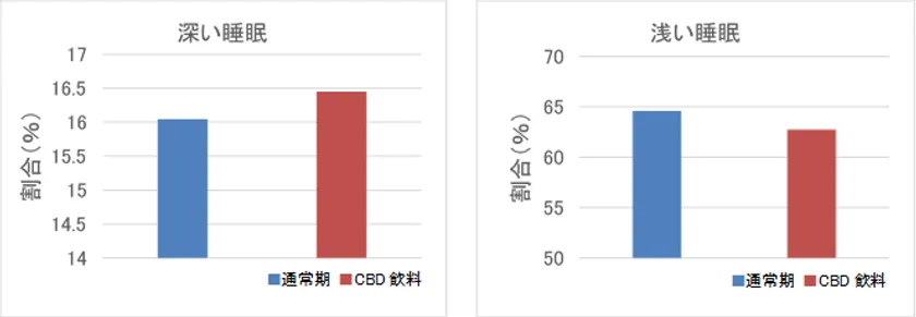CBD飲料摂取期間の方が深い睡眠の時間の割合が増加し、浅い睡眠の割合が減少する傾向