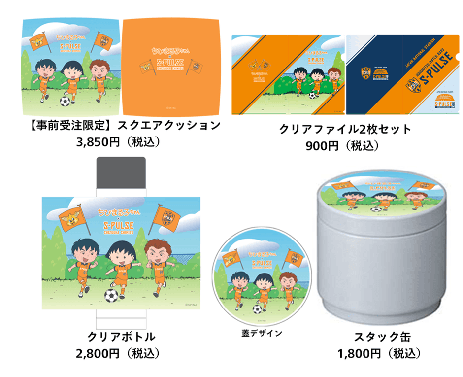 コラボレーションを記念して、「まる子」、「大野君」、「杉山君」がエスパルスカラーのユニフォームを着てサッカーを楽しむスペシャルアートを作成しました。 「S-PULSE 国立マッチ2023」 の開催を記念して、スペシャルアートを使用したコラボレーショングッズの事前受注販売をエスパルス公式オンラインストア限定で実施いたします。事前受注限定アイテムもあり、事前受注商品は「S-PULSE 国立マッチ2023」までにお届けできますので、ぜひご注文ください!