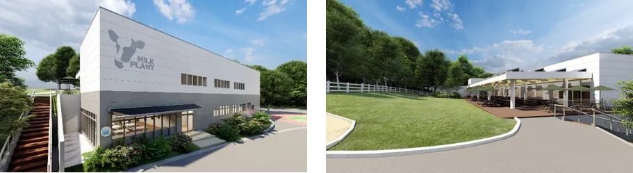 新しい施設は既存プラントの北側傾斜地に建設し、2024年春頃には先に店舗エリアがプレオープンとなる予定です。工事期間中は皆様にご迷惑をおかけいたしますが、「たくさんの魅力がつまったミルクプラントリニューアル」完了まで今しばらくお待ちください。