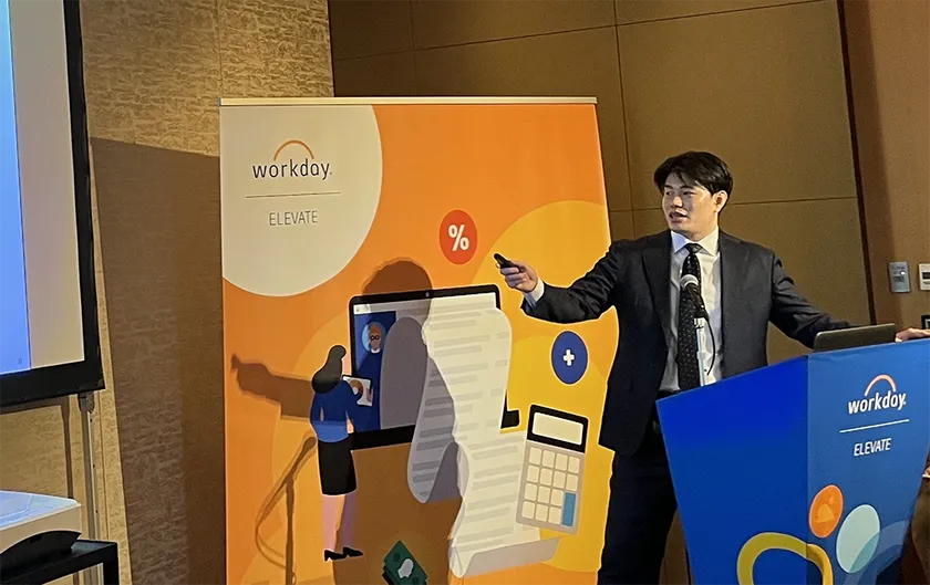 本イベントは、激しいビジネスの変化と競争に立ち向かうためにワークデイのソリューションを活用して先進的な取り組みをしている事例について紹介するものです。4年ぶりに対面形式で開催された本イベントでは総勢11社が登壇し、当社は、財務、会計、経営企画部門のカスタマーセッションにおいて「見える化」プロジェクトリーダーの佐々木拓也が講演しました。