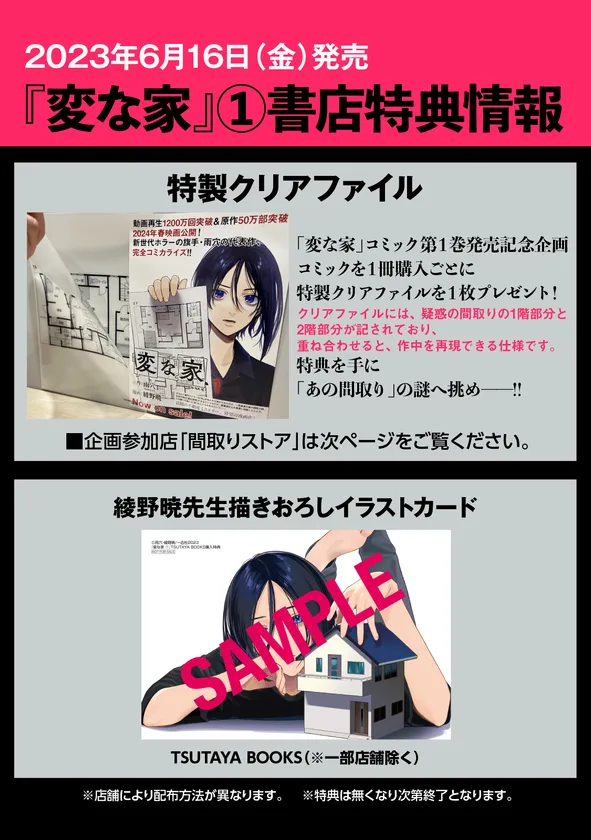 『変な家』第1巻発売を記念した書店特典がございます。